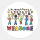 Refugiados design de Boas-vindas mostra pessoas de muitas cores em um grupo de boas-vindas amigável - celebrando a diversidade, novos chegados e assegurando que refugiados e migrantes sejam bem-vindos.