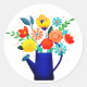 Adesivo Redondo Regador Azul Elegante & Flores Vermelhas Amarelas