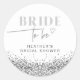 Esta noiva para ser autocolante apresenta sequências falsas de cintilação prateada, fontes ousadas modernas e um coração divertido desenhado pela mão. Edite facilmente o texto preto para atender às necessidades do seu evento. Este adesivo é perfeito para o seu chá de panela, café da manhã ou despedida de solteira.