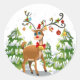 Reindeer Bonito na Neve com árvores e ornamentos pendurados em suas galhadas