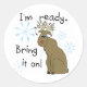 A rena está pronta para o Natal! Com os seus cheios de luzes de árvores de férias e cercados por grandes flocos de neve azuis, o texto diz "Estou pronto. Tragam-no!" em Reindeer Ready para t-shirts de Natal, capuzes, canecas, cartões, adesivos, ímanes e muito mais.