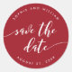Na moda Salve o adesivo Data com as palavras "Salvar a Data" em um script cursivo relaxado em branco contra uma cor de fundo editável (clique em personalizar para acessar). Personalize-o substituindo o texto do marcador de posição. Para obter mais opções, como alterar a fonte e seu tamanho/cor, expanda a curva/contrato ou o espaçamento entre letras, clique no botão "Personalizar". *Observe que a Marca d'água do Zazzle que aparece na visualização de zoom NÃO aparecerá no produto impresso final. © Rosewood e Citrus