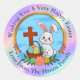Religious Happy Easter, Bunny with Cross & Egg Classic Round Sticker.