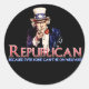 Esta cordialidade política humorística diz "Republicano, porque não se pode estar em bem-estar" com o Tio Sam atrás do texto.