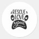 Adesivo Redondo Rescue Love Repeat Dog Paw Tee