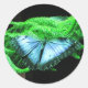 Adesivo Redondo Respiração Tomando Borboleta Azul Iridescente