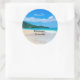 Belo dia ensolarado, praia arenosa, céus azuis e colinas verdes exuberantes: aposentadoria... é linda