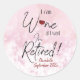 Posso encher o vinho que quiser, estou aposentado! Este adesivo de aposentadoria engraçado é a ideia perfeita para um aposentado. Especialmente aquele que está ansioso para relaxar com um copo de vinho na aposentadoria. Perfeito para enfermeiros, professores, colegas de trabalho e melhores amigos. Bonito fundo brilhante cor-de-rosa com citação elegante de fontes tipográficas.