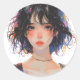 Adesivo Redondo Retrato de Garota Artística Japonesa
