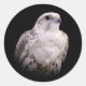 Adesivo Redondo Retrato Vignetado de Falcão de Saker Inquisitivo
