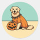 Adesivo Redondo Retriever de ouro Vestido como Pumpkin Fall Sticke