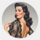 Adesivo Redondo Retro Brunette Pin-up Girl 50's Glamour Style