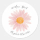 Retro inspired first birthday return address labels with 70's style daisies and boho fonts and colors.