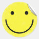 Estes adesivos têm uma face amarela retrorreflectora sorridente que tem bordas feitas para parecerem rugosas. Também tem um canto que parece estar se descascando. Se você quiser mudar para a cor branca de fundo, esses adesivos podem ser personalizados.