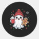 Adesivo Redondo Retro Ghost Beanie Christmas Holiday Xmas Coffee G