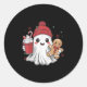 Adesivo Redondo Retro Ghost Beanie Christmas Holiday Xmas Coffee G