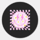 Adesivo Redondo Retro Happy Smile Face Checkered Pattern Nk Daisy