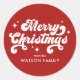 Os autocolantes de Natal simples e modernos, com "Feliz Natal", apresentados em letras brancas retrógradas com estrelas brilhantes sobre fundo vermelho. Personalize os adesivos de Feriado vermelho com seu nome ou texto personalizado. Os adesivos de na moda são perfeitos para usar para selagens de envelopes, embrulho de presente, favoritos para festas e muito mais!