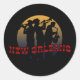 Esta design apresenta uma silhueta de músicos e a frase "New Orleans jazz".