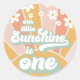 Adesivo Redondo Retro Sunshine Daisy boho floral primeiro aniversá