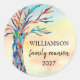 Este adesivo colorido da Associação Familiar apresenta uma árvore genealógica nas cores do arco-íris e do fundo aquarela. Personalize-o com seu nome de família e o ano. Mosaico original © Michele Davies.