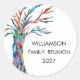 Adicione este adesivo moderno da Reunião Familiar à sua celebração. Ele apresenta uma árvore genealógica nas cores do arco-íris. Personalize-o com seu nome de família e o ano. Porque nós criamos nosso próprio trabalho de arte você não encontrará essa imagem exata de outros designers. Mosaico original © Michele Davies.