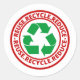 Reutilizar, Reduzir, Símbolo de Reciclar Adesivo redondo clássico