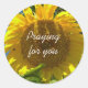 Vinheta de oração de girassol. Mensagem cristã em um adesivo fotográfico redondo contendo um girassol de jardim. Cartões correspondentes disponíveis.