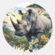 Os adesivos apresentam trabalho de arte de aquarela de um rinoceronte branco com fundo botânico. Excelente para comemorar o Dia Mundial do Rinoceronte em 22 de setembro, ou qualquer dia para amantes de os animais!