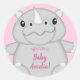 Adesivo Redondo Rhino Chá de fraldas Safari Garota Rosa