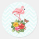 Adesivo Redondo Rico rosa Flamingo e Hibiscus Tropical