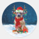 Adesivo Redondo Ridgeback Dog em Presente de Natal na Neve