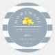 O limoncelo moderno favorece os adesivos. Design, limões e folhas de aquarelas, fundo de padrão de faixa azul e branca empoeirado e linhas de texto modelo para seu nome e data do evento.