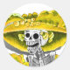 Adesivo Redondo Rindo de Mulher Esquelética em Bonnet Amarelo