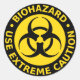 Risco biológico - Use precaução extrema - adesivo de aviso de risco biológico em amarelo e preto.