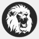 O leão rugido encara um simples design gráfico preto e branco no estilo de um trabalho de arte de estêncil. Para a vida selvagem e amantes de leões.