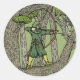 O lendário bandido inglês medieval Robin Hood atira o seu arco longo do membro de um carvalho da Floresta Sherwood nesta ilustração original de Richard H. Fay.