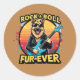 Adesivo Redondo Rocha e Roll German shepherd Retro Arte Sunset