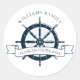 Um adesivo de férias de verão personalizado para seu cruzeiro de praia no oceano com um volante de barco azul-marinho. Esta design náutica tem o tema perfeito para as manobras de reunião de família que coincidem com a classe, comemorando a viagem especial. Personalize com seu sobrenome e ano.