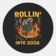 Adesivo Redondo Rollin’ Into 2026 Funny Raccoon Dumpster Fire