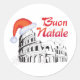 Buon Natale, design de férias, e a italiana Natale, com uma fotografia do Coliseu Romano, vestindo um chapéu de Papai Noel com neve caindo.