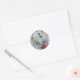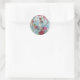 Elegante, clássico, vibrante e clássico design floral. Rosas vermelhas, cor-de-rosa, flores azuis com uma pomba branca carregando uma letra numa paisagem marinha.