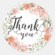 Adesivo Redondo Romântico Peach Floral Obrigado