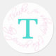 Adesivo Redondo Rosa, Aqua Monograma T Obrigado Sticker 4