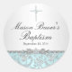 Adesivo Redondo Rosa azul e vinheta de batismo cruzado