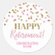 Feliz aposentadoria favorita etiqueta adesiva com rosa claro e padrão de confete de ouro.