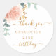 Adesivo Redondo Rosa de aniversário obrigado de eucalipto floral
