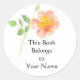 Um estante com um dogrose de cor pêssego, pintado em aquarelas, e o texto, 'Este livro pertence ao seu nome' para você personalizar.