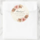 Elegante obrigado redondo que você cola, com rosas de aquarela, em chocolate marrom e rosa-pincel, champanhe com fundo branco de marfim. Imitação de folhas em relevo e decoração de folha de ouro, por favor note: não é folha de ouro real.