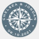 Impressos em branco contra um azul oceânico profundo, esses adesivos náuticos farão uma adição personalizada única aos seus convites de casamento, salvarão os anúncios de data ou os favores de eventos. O centro apresenta um gráfico de um rosa de bússola e está rodeado de duas linhas de texto personalizáveis. Basta mudar o texto e ajustar a curvatura usando a ferramenta design de Zazzle para obter um design único e personalizado! Verifique em minha loja se há produtos correspondentes nesta linha.